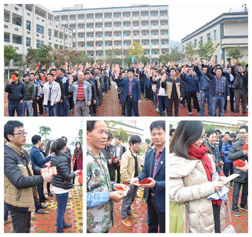 升旗儀式畢,由福建粵海總經(jīng)理鄭真龍發(fā)表開(kāi)工動(dòng)員講話(huà)。鄭總先給大家拜年,然后就市場(chǎng)環(huán)境、員工的協(xié)作總結(jié)了福建粵海2015年取得的成績(jī)。同時(shí)也對(duì)挑戰(zhàn)2016年8萬(wàn)噸的目標(biāo)表示充滿(mǎn)信心。鄭總致詞后便帶領(lǐng)著各部門(mén)長(zhǎng)為在場(chǎng)200多名員工派發(fā)開(kāi)工紅包并對(duì)同事們表示祝福。